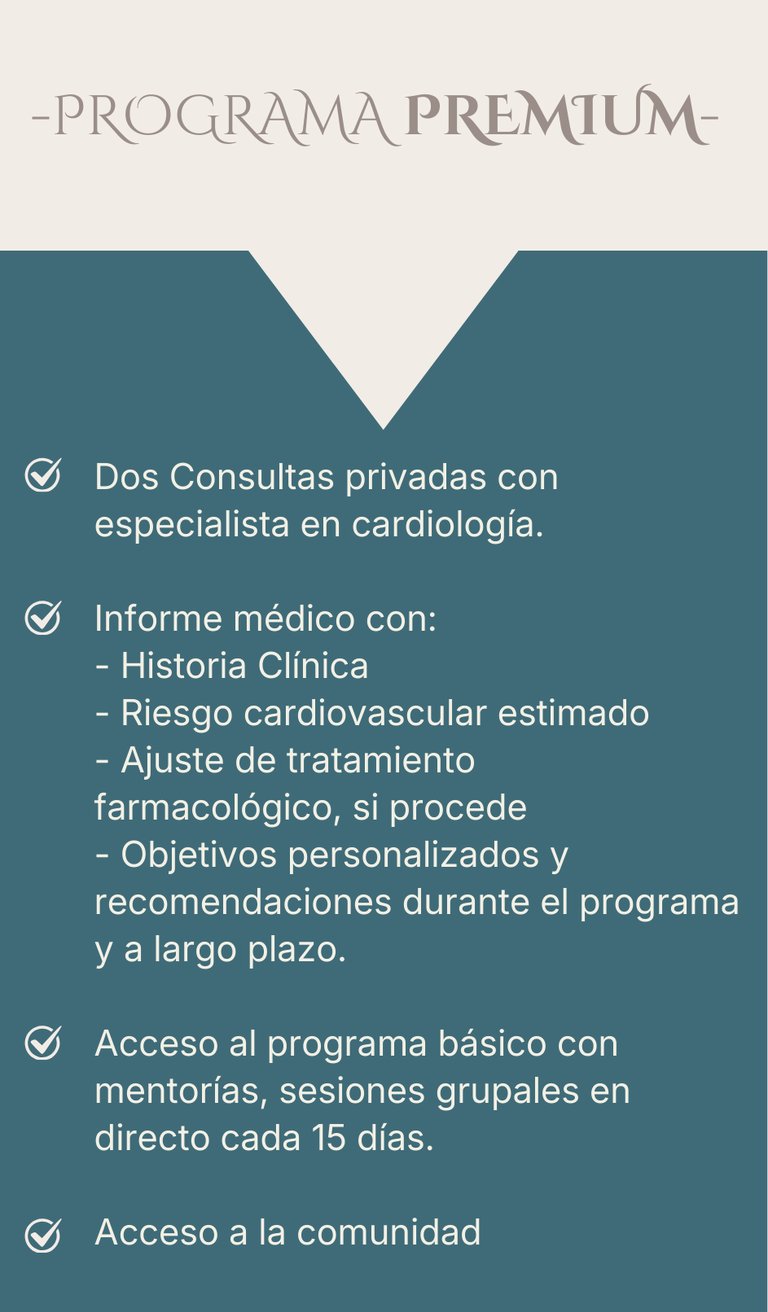 Alimentación: Aprenderás como debería ser una dieta cardiosaludable, marcadores de riesgo relacionados y lecciones prácticas asociadas, como aprender a leer las etiquetas de los alimentos, para poder saber elegir lo que llevas a tu mesa.